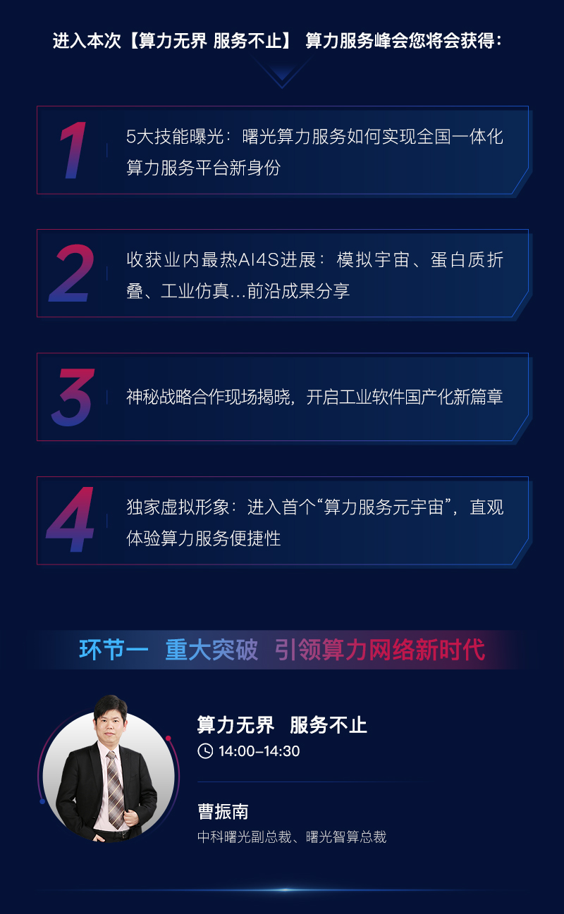 曙光智算作為中科曙光布局算力服務(wù)市場(chǎng)子公司,在成立一周年之際,誠(chéng)邀產(chǎn)業(yè)專(zhuān)家、前沿用戶(hù)、行業(yè)伙伴齊聚一堂,參與我國(guó)首個(gè)聚焦算力服務(wù)市場(chǎng)與算力服務(wù)網(wǎng)絡(luò)的專(zhuān)題峰會(huì)。